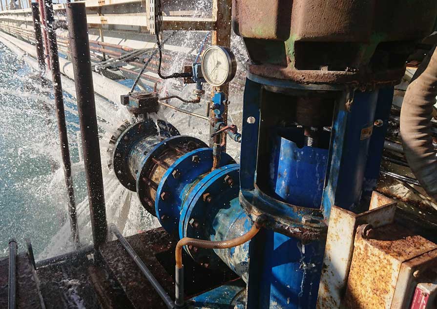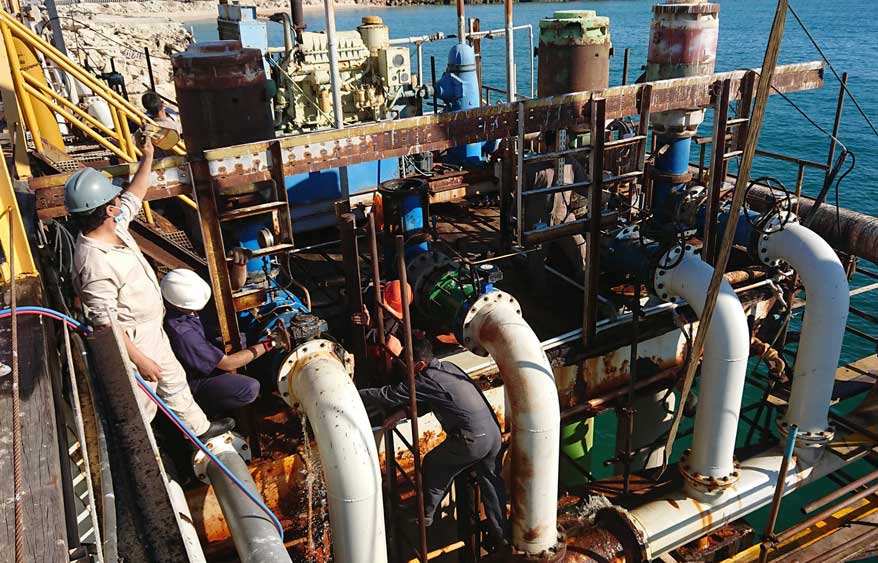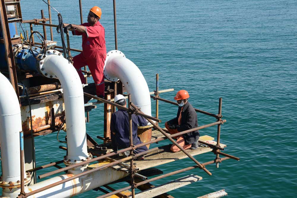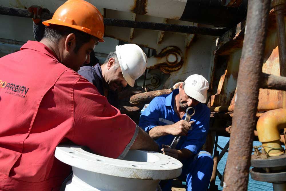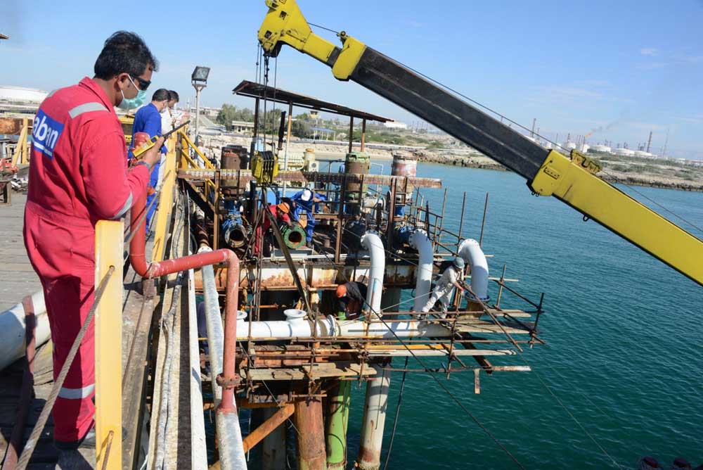 عملیات تعویض هِدِر 16 اینچ پمپهای آبشور اسکله نفتی منطقه لاوان