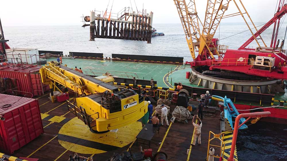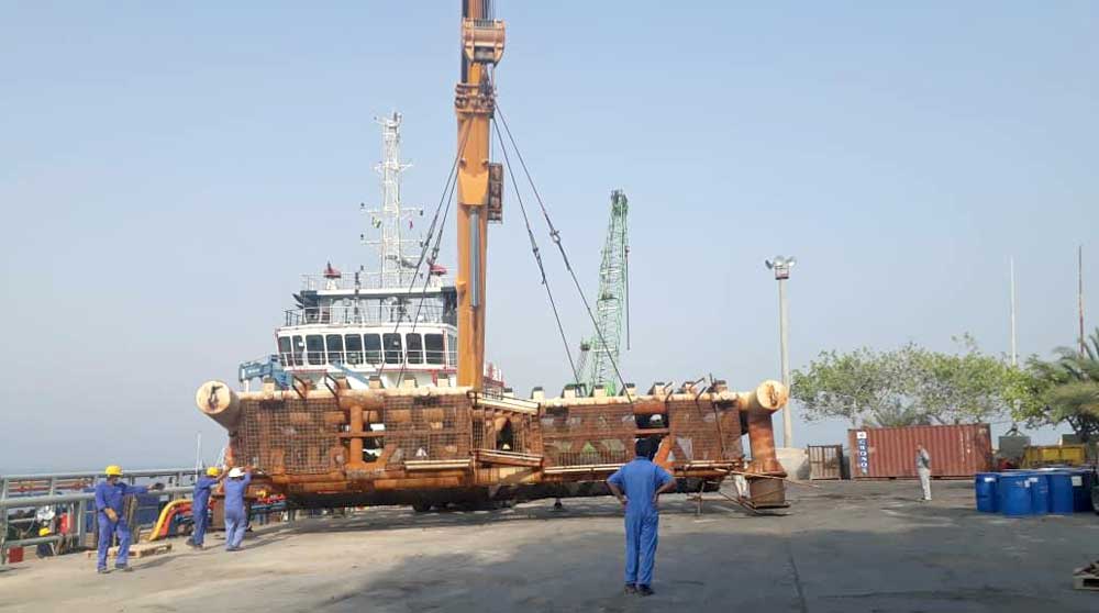 جداسازی پهلوگیر 60 تنی سکوی بلال و انتقال آن برای انجام تعمیرات